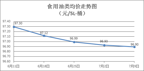 食用油類商品價格微幅下降。上周所監(jiān)測的9種食用油(5L裝)商品價格波動情況為1漲5跌3平,綜合零售均價為96.90元/桶,環(huán)比下降0.04%。其中:魯花花生油、金龍魚調(diào)和油零售均價分別為每桶157.05元、71.39元,環(huán)比分別下降0.10%、下降0.06%。