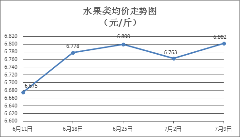 水果類商品價格有所回升。上周所監(jiān)測的6種水果商品價格波動情況為3漲3跌,綜合零售均價為6.802元/斤,環(huán)比上漲0.57%。其中蘋果、葡萄、梨零售均價分別為每斤7.41元、14.43元、6.54元,環(huán)比分別下降0.40%、上漲1.76%、上漲1.71%。