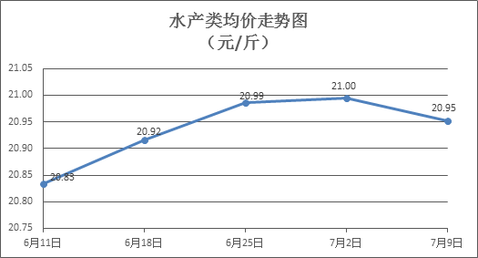 水產(chǎn)類商品價格小幅波動。上周所監(jiān)測的10種水產(chǎn)商品價格波動情況為5漲4跌1平,綜合均價為20.95元/斤,環(huán)比下降0. 20%。其中:草魚、鰱魚、鳙魚、羅非魚、基圍蝦零售均價分別為每斤11.11元、10.05元、10.19元、8.42元、38.58元,環(huán)比分別上漲0.09%、下降0.50%、上漲0.10%、下降1.41%、下降1.38%。