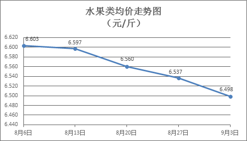 水果類商品價格總體略降。上周所監(jiān)測的6種水果商品價格波動情況為1漲3跌2平,綜合零售均價為6.498元/斤,下降0.59%。其中蘋果、香蕉、葡萄零售均價分別為每斤7.31元、3.06元、13.20元,環(huán)比分別下降0.95%、持平、下降1.12%。