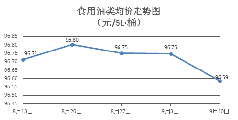 食用油類商品價格穩(wěn)中微降。上周所監(jiān)測的9種食用油(5L裝)商品價格波動情況為1漲6跌2平,綜合零售均價為96.59元/桶,環(huán)比下降0.17%。其中:魯花花生油、金龍魚調(diào)和油零售均價分別為每桶157.26元、70.79元,環(huán)比分別下降0.01%、下降0.24%。