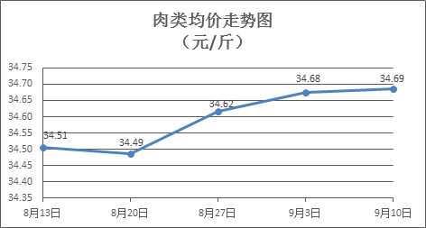 肉類商品價格微幅上漲。上周所監(jiān)測的8種肉類商品價格波動情況為6漲2跌,綜合零售均價為34.69元/斤,環(huán)比上漲0.03%。其中:排骨、精瘦肉、有皮上肉、牛肉、帶骨羊肉零售均價分別為每斤29.87元、19.00元、14.30元、53.99元、44.91元,環(huán)比分別上漲0.13%、上漲1.28%、上漲0.28%、上漲0.09%、下降0.75%。