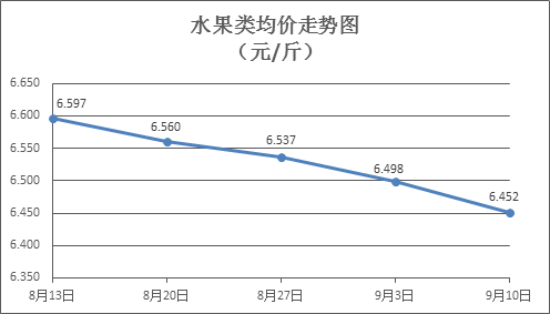 水果類商品價格總體略降。上周所監(jiān)測的6種水果商品價格波動情況為2漲4跌,綜合零售均價為6.452元/斤,環(huán)比下降072%。其中蘋果、香蕉、葡萄零售均價分別為每斤7.30元、3.05元、13.00元,環(huán)比分別下降0.14%、下降0.33%、下降1.52%。
