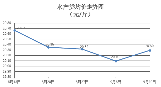 水產(chǎn)類商品價格小幅回升。上周所監(jiān)測的10種水產(chǎn)商品價格波動情況為9漲1跌,綜合均價為20.30元/斤,環(huán)比上漲0.99%。其中:草魚、鰱魚、鳙魚、羅非魚、基圍蝦零售均價分別為每斤11.05元、9.92元、10.21元、8.38元、35.53元,環(huán)比分別上漲0.82%、持平、上漲1.09%、上漲1.09%、上漲0.45%。