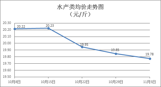 水產(chǎn)類商品價格總體略降。上周所監(jiān)測的10種水產(chǎn)商品價格波動情況為2漲7跌1平,綜合均價為19.78元/斤,環(huán)比下降0.36%。其中:草魚、鰱魚、鯽魚、羅非魚、基圍蝦零售均價分別為每斤10.94元、9.53元、14.00元、8.44元、32.42元,環(huán)比分別下降0.64%、下降0.52%、下降0.85%、持平、下降0.61%。