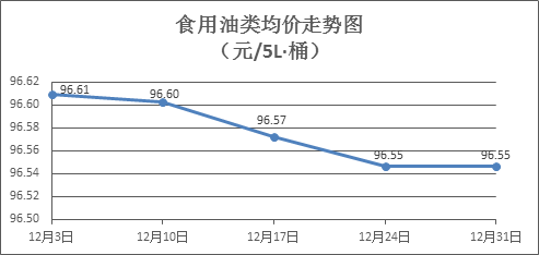 食用油類商品價(jià)格微幅波動(dòng)。上周所監(jiān)測的9種食用油(5L裝)商品價(jià)格波動(dòng)情況為2漲3跌4平,綜合零售均價(jià)為96.55元/桶,環(huán)比持平。其中:魯花花生油、大豆油零售均價(jià)分別為每桶157.13元、60.23元,環(huán)比分別上漲0.06%、下降0.10%。