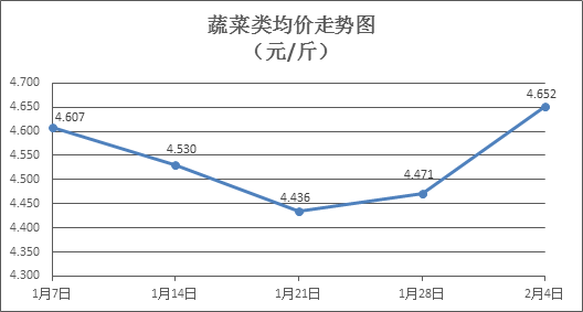 據(jù)本市21家農(nóng)貿市場監(jiān)測數(shù)據(jù)顯示,上周(1月29日至2月4日,下同)市場上各類“菜籃子”商品供應充足,所監(jiān)測的7大類“菜籃子”商品價格6漲1跌。其中:糧油類商品價格微幅波動,肉禽蛋類、蔬果類、水產(chǎn)類商品價格總體略漲。受春節(jié)市場需求增加影響,各類農(nóng)產(chǎn)品價格略有上漲,預計節(jié)后消費降溫價格回落。
