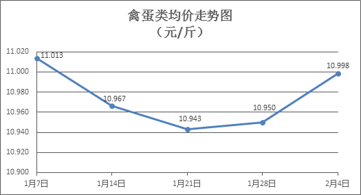 家禽類商品價格小幅上漲。上周所監(jiān)測的6種禽蛋類商品價格波動情況為4漲2跌,綜合零售均價為10.998元/斤,環(huán)比上漲0.44%。其中:白條雞、白條鴨零售均價分別為每斤20.35元、15.19元,環(huán)比分別上漲1.24%、上漲0.40%;白殼雞蛋、鴨蛋零售均價分別為每斤6.75元、7.69元,環(huán)比分別下降0.30%、上漲0.26%。
