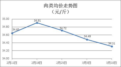 肉類商品價(jià)格微幅下降。上周所監(jiān)測的8種肉類商品價(jià)格波動(dòng)情況為1漲7跌,綜合零售均價(jià)34.31元/斤,環(huán)比下降0.51%。其中:排骨、精瘦肉、有皮上肉、牛肉、帶骨羊肉零售均價(jià)分別為每斤29.70元、18.45元、14.75元、53.65元、44.86元,環(huán)比分別下降0.83%、下降0.91%、下降0.94%、下降0.43%、下降0.47%。