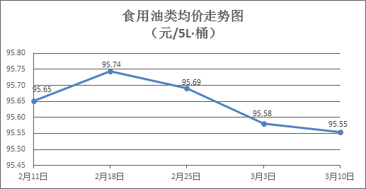 食用油類商品價(jià)格微幅盤整。上周所監(jiān)測的9種食用油(5L裝)商品價(jià)格波動(dòng)情況為2漲3跌4平,綜合零售均價(jià)為95.55元/桶,環(huán)比下降0.03%。其中:魯花花生油、玉米油零售均價(jià)分別為每桶152.54元、75.99元,環(huán)比分別下降0.28%、上漲0.18%。