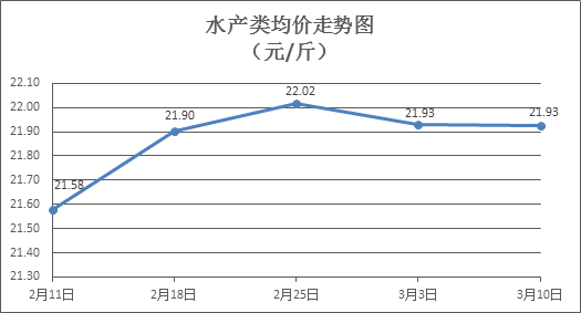 水產(chǎn)類商品價(jià)格窄幅波動(dòng)。上周所監(jiān)測的10種水產(chǎn)商品價(jià)格波動(dòng)情況為4漲6跌,綜合均價(jià)為21.93元/斤,環(huán)比下降0.02%。其中:草魚、鯽魚、羅非魚、基圍蝦零售均價(jià)分別為每斤11.49元、14.32元、8.92元、35.03元,環(huán)比分別下降0.78%、上漲0.28%、下降0.34%、下降1.99%。