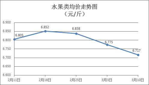 水果類商品價(jià)格小幅下降。上周所監(jiān)測的6種水果商品價(jià)格波動(dòng)情況為5跌1平,綜合零售均價(jià)為6.717元/斤,環(huán)比下降0.86%。其中橙子、蘋果、葡萄零售均價(jià)分別為每斤5.20元、7.43元、15.33元,環(huán)比分別下降0.57%、下降1.20%、下降1.10%。