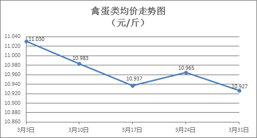 禽蛋類商品價格窄幅盤降。所監(jiān)測的6種禽蛋類商品價格波動情況為1漲3跌2平,綜合零售均價為每斤10.927元,環(huán)比下降0.35%。其中:白條雞、白條鴨零售均價分別為每斤20.19元、14.98元,環(huán)比分別下降0.64%、上漲0.07%;白殼雞蛋、鴨蛋零售均價分別為每斤6.46元、7.65元,環(huán)比分別下降0.15%、下降1.29%。
