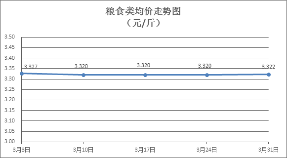 糧食類商品價格基本平穩(wěn)。所監(jiān)測的6種糧食類商品價格波動情況為1漲1跌4平,綜合零售均價為每斤3.322元,環(huán)比上漲0.05%。其中:絲苗米、珍珠米、標準粉零售均價分別為每斤3.54元、3.08元、3.17元,環(huán)比分別上漲0.57%、下降0.32%、持平。