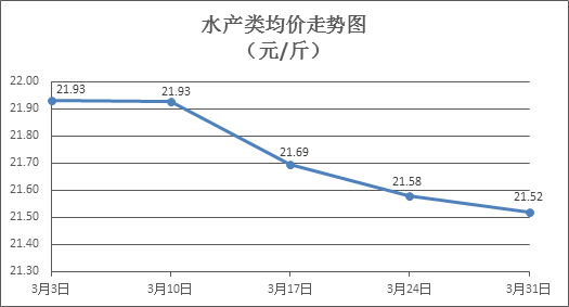 水產類商品價格普遍下降。所監(jiān)測的10種水產商品價格波動情況為1漲8跌1平,綜合均價為每斤21.52元,環(huán)比下降0.28%。其中:草魚、鯽魚、羅非魚、基圍蝦零售均價分別為每斤11.32元、14.25元、8.79元、34.34元,環(huán)比分別下降0.26%、下降0.28%、下降1.57%、下降0.95%。