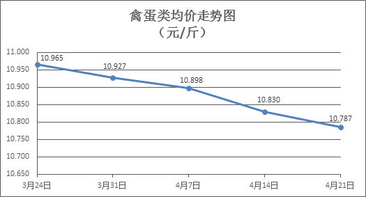 禽蛋類商品價格微幅下降。所監(jiān)測的6種禽蛋類商品價格波動情況為1漲5跌,綜合零售均價為每斤10.787元,環(huán)比下降0.40%。其中:白條雞、白條鴨零售均價分別為每斤19.96元、14.83元,環(huán)比分別下降0.45%、下降0.20%;白殼雞蛋、鴨蛋零售均價分別為每斤6.35元、7.48元,環(huán)比分別下降0.78%、上漲0.13%。