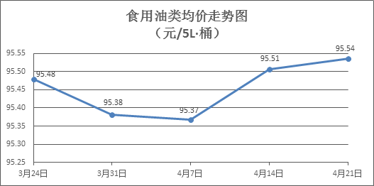 食用油類價格微幅盤升。所監(jiān)測的9種食用油(5L裝)商品價格波動情況為4漲4跌1平,綜合零售均價為每桶95.54元,環(huán)比上漲0.03%。其中:魯花花生油、金龍油調(diào)和油零售均價分別為每桶154.26元、71.55元,環(huán)比分別上漲0.12%、下降0.06%。