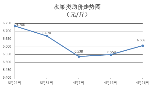 水果類商品價格升降互現(xiàn)。所監(jiān)測的6種水果商品價格波動情況為3漲3跌,綜合零售均價為每斤6.608元,環(huán)比上漲0.89%。其中橙子、蘋果、香蕉零售均價分別為每斤5.45元、7.39元、2.82元,環(huán)比分別上漲0.37%、下降0.40%、下降0.35%。