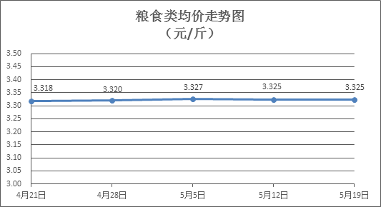 糧食類商品價(jià)格基本平穩(wěn)。所監(jiān)測(cè)的6種糧食類商品價(jià)格均持平,零售均價(jià)為每斤3.325元。其中:晚秈米、絲苗米、標(biāo)準(zhǔn)粉零售均價(jià)分別為每斤3.26元、3.56元、3.17元,環(huán)比均持平。
