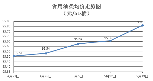 食用油類價(jià)格微幅下降。所監(jiān)測(cè)的9種食用油(5L裝)商品價(jià)格波動(dòng)情況為2漲4跌3平,綜合零售均價(jià)為每桶95.80元,環(huán)比下降0.02%。其中:魯花花生油、金龍油花生油零售均價(jià)分別為每桶154.37元、103.86元,環(huán)比分別上漲0.03%、下降0.12%。