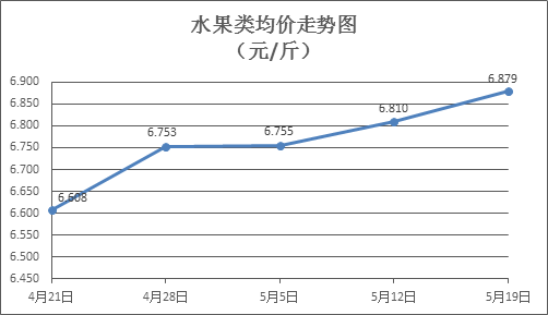 水果類商品價(jià)格有所上漲。所監(jiān)測(cè)的6種水果商品價(jià)格波動(dòng)情況為8漲2跌,綜合零售均價(jià)為每斤6.878元,環(huán)比上漲1.00%。其中橙子、蘋果、葡萄零售均價(jià)分別為每斤5.76元、7.52元、15.53元,環(huán)比分別上漲1.23%、上漲0.94%、上漲1.97%。