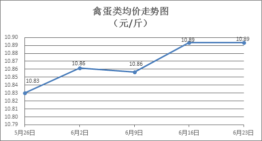 禽蛋類商品價(jià)格微幅盤整。所監(jiān)測的6種禽蛋類商品價(jià)格波動(dòng)情況為2漲3跌1平,綜合零售均價(jià)為每斤10.89元,環(huán)比持平。其中:白條雞、白條鴨零售均價(jià)分別為每斤20.22元、14.99元,環(huán)比分別上漲0.35%、下降0.13%;白殼雞蛋、鴨蛋零售均價(jià)分別為每斤6.36元、7.50元,環(huán)比分別下降0.47%、下降0.40%。