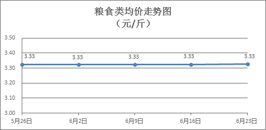 糧食類商品價(jià)格基本平穩(wěn)。所監(jiān)測的6種糧食類商品價(jià)格波動(dòng)情況為2漲1跌3平,零售均價(jià)為每斤3.33元,環(huán)比上漲0.05%。其中:晚秈米、絲苗米、富強(qiáng)粉零售均價(jià)分別為每斤3.26元、3.55元、3.37元,環(huán)比分別持平、下降0.28%、上漲0.30%。