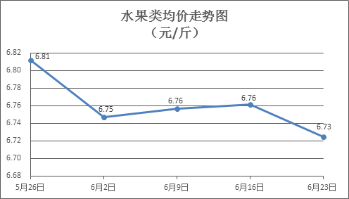 水果類商品價(jià)格略有下降。所監(jiān)測的6種水果商品價(jià)格波動(dòng)情況為2漲4跌,綜合零售均價(jià)為每斤6.73元,環(huán)比下降0.54%。其中橙子、蘋果、葡萄零售均價(jià)分別為每斤5.66元、7.47元、15.01元,環(huán)比分別上漲1.07%、下降0.80%、下降0.33%。