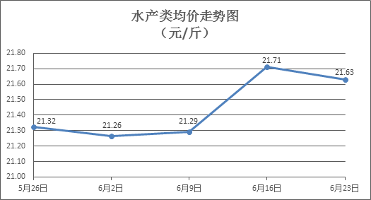 水產(chǎn)類商品價(jià)格漲跌互現(xiàn)。所監(jiān)測的10種水產(chǎn)商品價(jià)格波動(dòng)情況為4漲5跌1平,綜合均價(jià)為每斤21.63元,環(huán)比下降0.36%。其中:草魚、鯽魚、鱸魚、羅非魚、基圍蝦零售均價(jià)分別為每斤11.09元、14.31元、21.10元、8.85元、30.61元,環(huán)比分別下降3.73%、下降0.62%、上漲2.38%、上漲0.57%、下降1.70%。