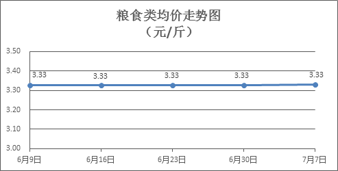 糧食類商品價格保持穩(wěn)定。所監(jiān)測的6種糧食類商品價格均持平,零售均價為每斤3.33元。其中:晚秈米、珍珠米、標(biāo)準(zhǔn)粉零售均價分別為每斤3.26元、3.08元、3.17元,環(huán)比均持平。