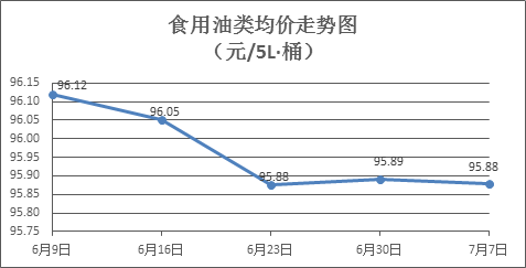 食用油類商品價格穩(wěn)中微調(diào)。所監(jiān)測的9種食用油(5L裝)商品價格波動情況為3漲1跌5平,綜合零售均價為每桶95.88元,環(huán)比下降0.01%。其中:魯花花生油、菜籽油零售均價分別為每桶154.50元、73.55元,環(huán)比分別上漲0.03%、下降0.16%。