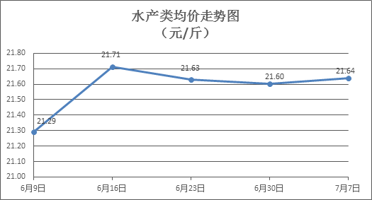 水產(chǎn)類商品價格有所微漲。所監(jiān)測的10種水產(chǎn)商品價格波動情況為4漲3跌3平,綜合均價為每斤21.64元,環(huán)比上漲0.16%。其中:草魚、鯽魚、鱸魚、羅非魚、基圍蝦零售均價分別為每斤11.17元、14.30元、21.60元、8.85元、30.29元,環(huán)比分別上漲0.09%、下降0.14%、上漲0.98%、上漲0.11%、下降0.33%。