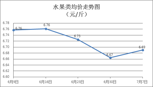水果類商品價格有所上漲。所監(jiān)測的6種水果商品價格波動情況為3漲2跌1平,綜合零售均價為每斤6.69元,環(huán)比上漲0.43%。其中橙子、蘋果、香蕉零售均價分別為每斤5.64元、7.49元、2.94元,環(huán)比分別上漲0.36%、上漲0.13%、下降1.01%。