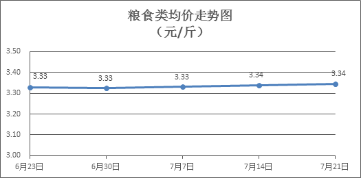 糧食類商品價(jià)格穩(wěn)中微漲。所監(jiān)測(cè)的6種糧食類商品價(jià)格波動(dòng)情況為3漲3平,零售均價(jià)為每斤3.34元,環(huán)比上漲0.20%。其中:晚秈米、珍珠米、標(biāo)準(zhǔn)粉零售均價(jià)分別為每斤3.30元、3.11元、3.17元,環(huán)比分別上漲0.30%、上漲0.32%、持平。