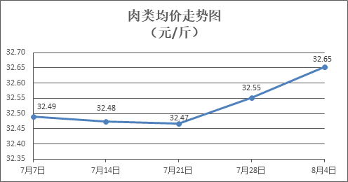 肉類商品價格總體略漲。所監(jiān)測的8種肉類商品價格波動情況為5漲3跌,綜合零售均價為每斤32.65元,環(huán)比上漲0.31%。其中:排骨、精瘦肉、牛肉、帶骨羊肉零售均價分別為每斤31.83元、19.61元、45.56元、43.37元,環(huán)比分別上漲1.08%、上漲2.40%、下降0.70%、下降0.09%。