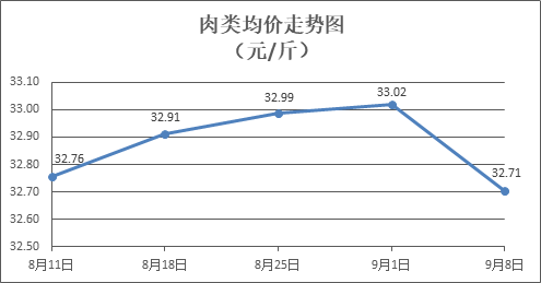肉類商品價(jià)格總體略降。所監(jiān)測的8種肉類商品價(jià)格波動情況為2漲5跌1平,綜合零售均價(jià)為每斤32.71元,環(huán)比下降0.95%。其中:排骨、精瘦肉、牛肉、帶骨羊肉零售均價(jià)分別為每斤32.78元、20.30元、45.52元、41.20元,環(huán)比分別下降0.88%、下降0.25%、上漲0.13%、下降5.00%。