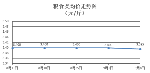 糧食類商品價(jià)格基本平穩(wěn)。所監(jiān)測的4種糧食類商品價(jià)格波動情況為1跌3平,零售均價(jià)為每斤3.395元,環(huán)比下降0.15%。其中:絲苗米、富強(qiáng)粉零售均價(jià)分別為每斤3.58元、3.37元,環(huán)比分別下降0.56%、持平。