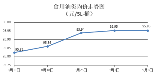 食用油類商品價(jià)格保持穩(wěn)定。所監(jiān)測的9種食用油(5L裝)商品價(jià)格均持平,綜合零售均價(jià)為每桶95.95元。其中:魯花花生油、金龍魚調(diào)和油零售均價(jià)分別為每桶154.40元、71.57元,環(huán)比均持平。