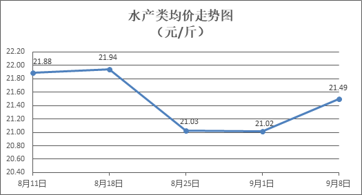 水產(chǎn)類商品價(jià)格有所上漲。所監(jiān)測的9種水產(chǎn)商品價(jià)格波動情況為7漲1跌1平,綜合均價(jià)為每斤21.49元,環(huán)比上漲2.27%。其中:草魚、鯽魚、羅非魚、海蝦零售均價(jià)分別為每斤11.24元、14.21元、8.92元、52.72元,環(huán)比分別上漲0.27%、上漲0.07%、上漲0.11%、上漲7.05%。