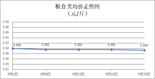 糧食類商品價格基本平穩(wěn)。所監(jiān)測的4種糧食類商品價格波動情況為1跌3平,零售均價為每斤3.393元,環(huán)比下降0.07%。其中:絲苗米、富強粉零售均價分別為每斤3.58元、3.36元,環(huán)比分別持平、下降0.30%。