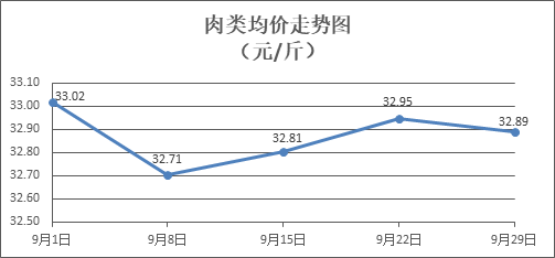 肉類商品價格總體略降。所監(jiān)測的8種肉類商品價格波動情況為2漲5跌1平,綜合零售均價為每斤32.89元,環(huán)比下降0.18%。其中:排骨、精瘦肉、牛肉、帶骨羊肉零售均價分別為每斤32.85元、20.53元、45.72元、41.52元,環(huán)比分別下降0.58%、下降0.44%、下降0.04%、上漲0.31%。