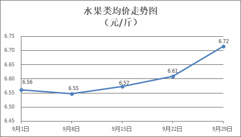 水果類商品價格穩(wěn)中有漲。所監(jiān)測的6種水果商品價格波動情況為2漲2跌2平,綜合零售均價為每斤6.72元,環(huán)比上漲1.61%。其中橙子、蘋果、葡萄零售均價分別為每斤6.75元、7.53元、13.42元,環(huán)比分別上漲9.58%、持平、上漲0.83%。