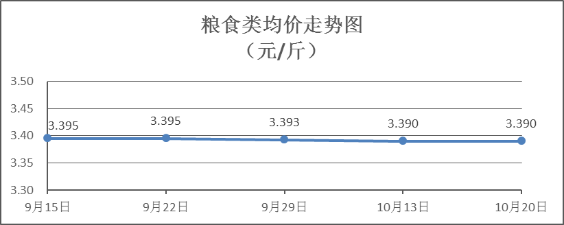 糧食類商品價(jià)格保持穩(wěn)定。所監(jiān)測的4種糧食類商品價(jià)格均持平,零售均價(jià)為每斤3.390元。其中:絲苗米、富強(qiáng)粉零售均價(jià)分別為每斤3.57元、3.36元,環(huán)比均持平。