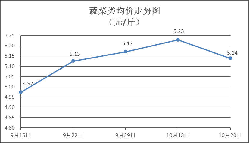 蔬菜類商品價(jià)格小幅回落。所監(jiān)測的32 種蔬菜商品價(jià)格波動(dòng)情況為10漲22跌,綜合零售均價(jià)為每斤5.14元,環(huán)比下降1.72%。其中:漲幅居前的品種包括西芹、花菜、青尖椒,零售均價(jià)分別為每斤6.03元、6.53元、6.67元,環(huán)比分別上漲4.51%、1.40%、1.37%;跌幅靠前的品種包括苦瓜、本地菜心、水東芥菜,零售均價(jià)分別為每斤4.63元、5.24元、4.39元,環(huán)比分別下降9.57%、8.23%、5.39%。