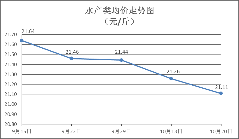 水產(chǎn)類商品價(jià)格略有下降。所監(jiān)測的9種水產(chǎn)商品價(jià)格波動(dòng)情況為3漲6跌,綜合均價(jià)為每斤21.11元,環(huán)比下降0.70%。其中:草魚、鯽魚、羅非魚、基圍蝦零售均價(jià)分別為每斤11.06元、13.87元、9.00元、30.49元,環(huán)比分別上漲0.18%、下降0.14%、下降0.44%、上漲0.10%。