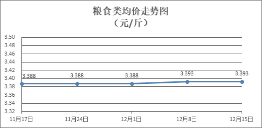 糧食類商品價格保持穩(wěn)定。所監(jiān)測的4種糧食類商品價格均持平,零售均價為每斤3.393元。其中:油粘米、富強粉零售均價分別為每斤3.52元、3.36元,環(huán)比均持平。