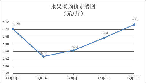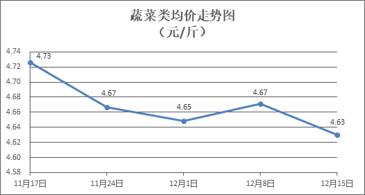 據(jù)本市21家農(nóng)貿市場監(jiān)測數(shù)據(jù)顯示,上周(12月9日至12月15日)市場上各類“菜籃子”商品供應充足,所監(jiān)測的7大類“菜籃子”商品價格總體表現(xiàn)為4漲2跌1平。其中:糧食類商品價格基本平穩(wěn),食用油類、肉類、水果類、水產(chǎn)類商品價格總體略漲,禽蛋類、蔬菜類商品價格主降。隨著節(jié)日臨近,水果、水產(chǎn)等商品價格穩(wěn)中略漲。氣溫下降,預計肉禽類商品價格有所支撐。