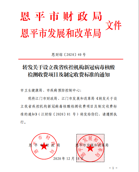 附件1:江財綜〔2020〕81號轉發(fā)關于設立我省疾控機構新冠病毒核酸檢測收費項目及制定收費標準的通知.pdf