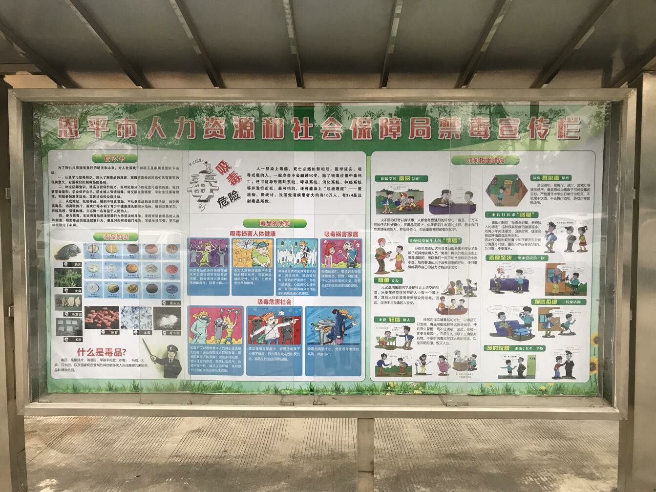 在大院玻璃櫥窗開設(shè)禁毒宣傳專欄