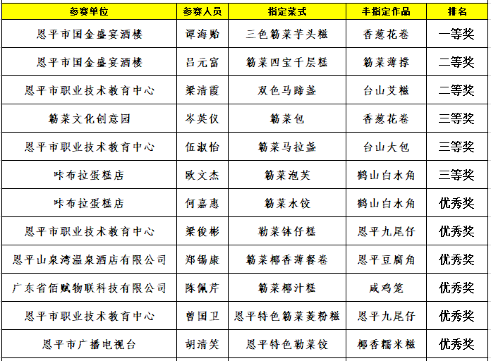 本次競賽通過設(shè)置工匠組和民間組兩種比賽形式。通過粵菜師傅工程簕菜糕點工匠組比賽,進(jìn)一步弘揚工匠精神,提升恩平全市餐飲行業(yè)廣大職工的職業(yè)技能,加強全市餐飲企業(yè)間烹飪技術(shù)的交流與學(xué)習(xí);通過民間組比賽發(fā)動民眾關(guān)注參與到活動中來,擴大活動的宣傳廣度和深度效應(yīng),也能發(fā)掘民間對簕菜美食文化的傳承與創(chuàng)新。
